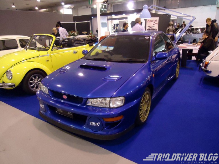 Zato izveštaj počinjem od relativno modernog vozila, od koga su mi noge zaklecale, sveti gral ljubitelja Subarua – Subaru Impreza 22B. Ovaj primerak sa desnim volanom, fantasične istorije, odlične očuvanosti, bio je na štandu jednog renomiranog dilera. Nisam se usudio da pitam za cenu, ali sam zato udario po fotoaparatu kao lud.