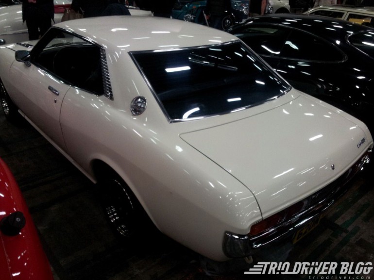 Kad malo bolje razmislim, Toyota je jedina bila prisutna od japanskih proizvođača, pošto je i poslednji japanski oldtajmer, prisutan na sajmu, bio iz njene ergele. U pitanju je bila prva generacija modela Celica, sa čudnom kombinacijom britanskih tablica i levog volana.
